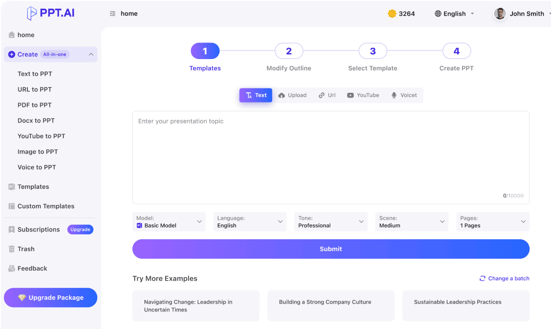 AI Powerpoint is a professional presentation tool that transforms your content into stunning presentations in minutes. Using advanced AI technology, it analyzes your input and creates well-structured, visually appealing slides with professional design.